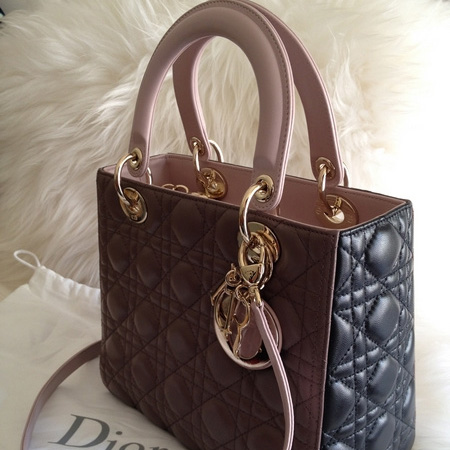 Dior, Оригинал. Из натуральной кожи,ручки натуральной кожи. Цвет: сиреневый, бока черные, ручки и ремешок бежевые, с фурнитурой под золото. Фирменный логотип Dior из букв на ручке. Размер сумки: 24смх20смх11см.