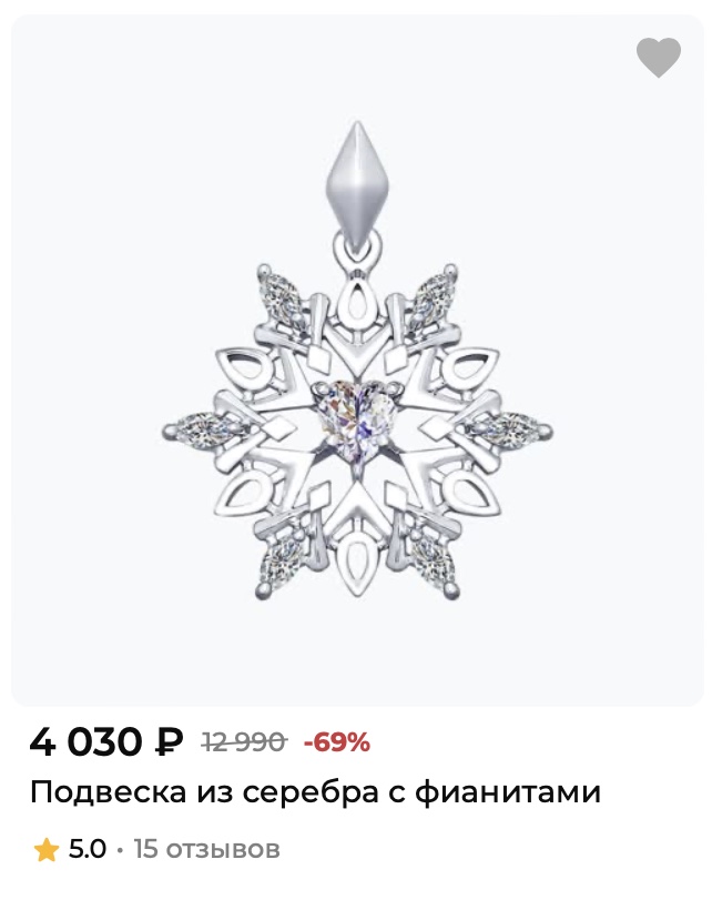 A silver pendant from the brand SOKOLOV featuring a snowflake design embellished with sparkling cubic zirconia stones. The design evokes a festive, magical mood and is intended to add joy and elegance to any outfit.