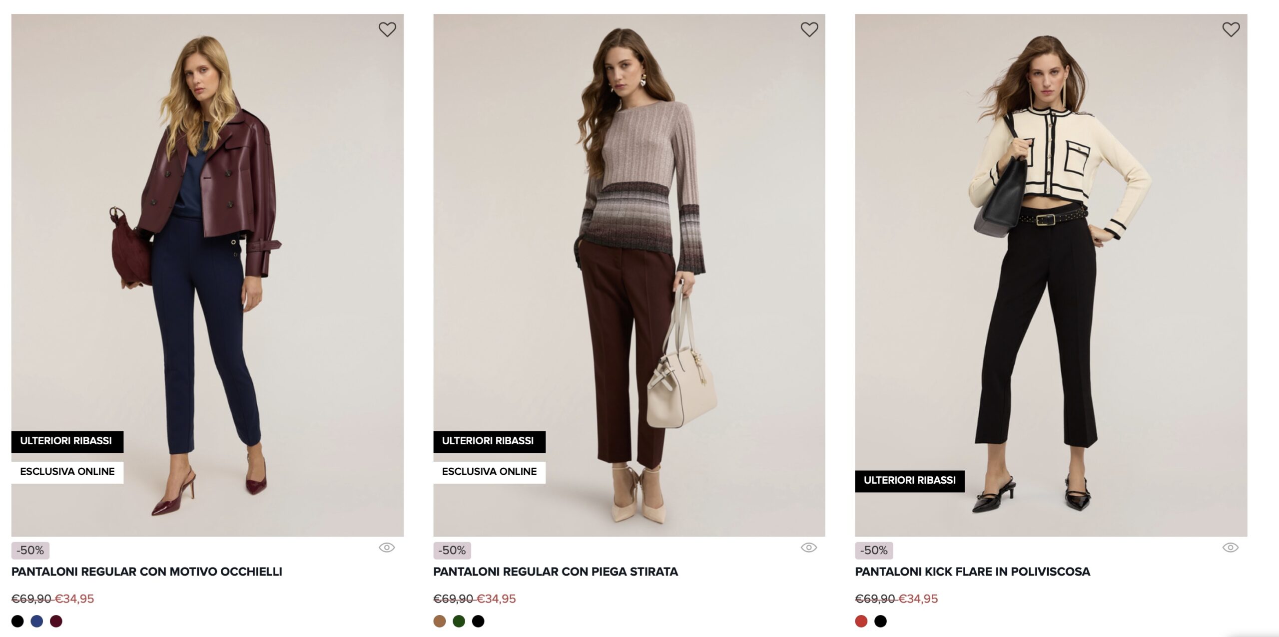 Motivi — это бренд, который отлично сочетает женственность, трендовость и утончённость в повседневных коллекциях. В сезоне зимних распродаж одежды 2026 в Италии Motivi предлагает прекрасные предложения на: